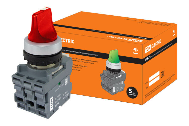 Переключатель на 3 положения с фиксацией M3SS1-21R короткая ручка(LED) d22мм/220B 1з+1р красный | SQ0747-0074 | TDM