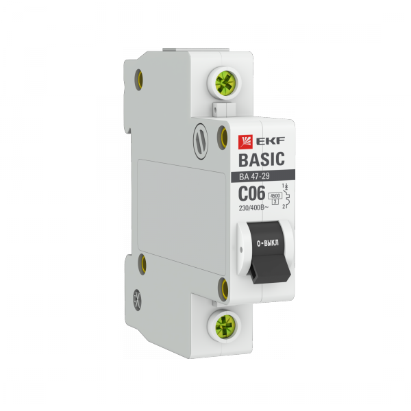 Выключатель автоматический однополюсный ВА 47-29 6А C 4,5кА Basic | mcb4729-1-06C | EKF