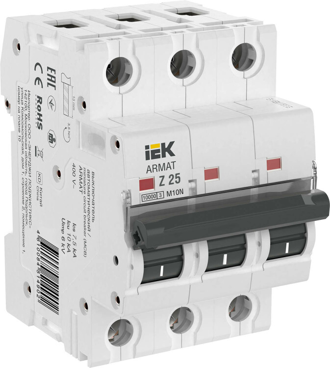 Выключатель автоматический трёхполюсный M10N 3P Z 25А 10кА ARMAT | AR-M10N-3-Z025 | IEK
