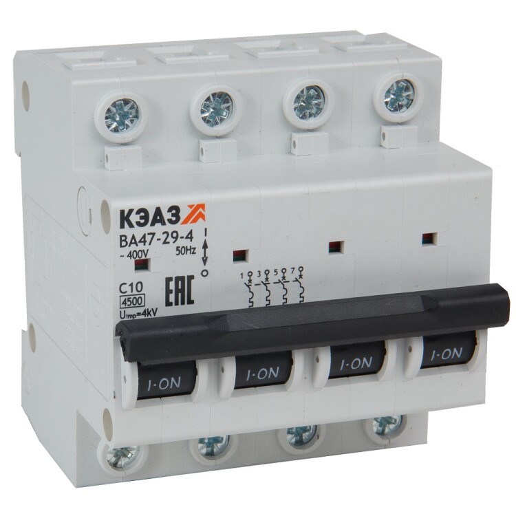 Выключатель автоматический четырехполюсной ВА47-29-4C8-УХЛ3 (4,5кА)| 318344 | КЭАЗ