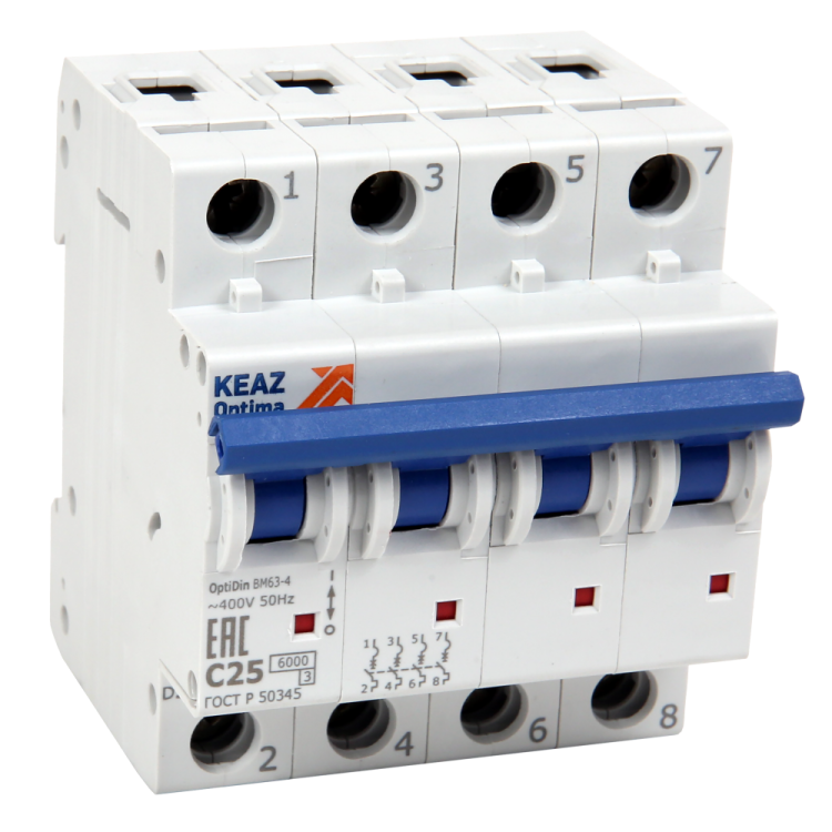 Выключатель автоматический четырехполюсной OptiDin BM63-4NB25-УХЛ3 (Новый) | 260954 | КЭАЗ
