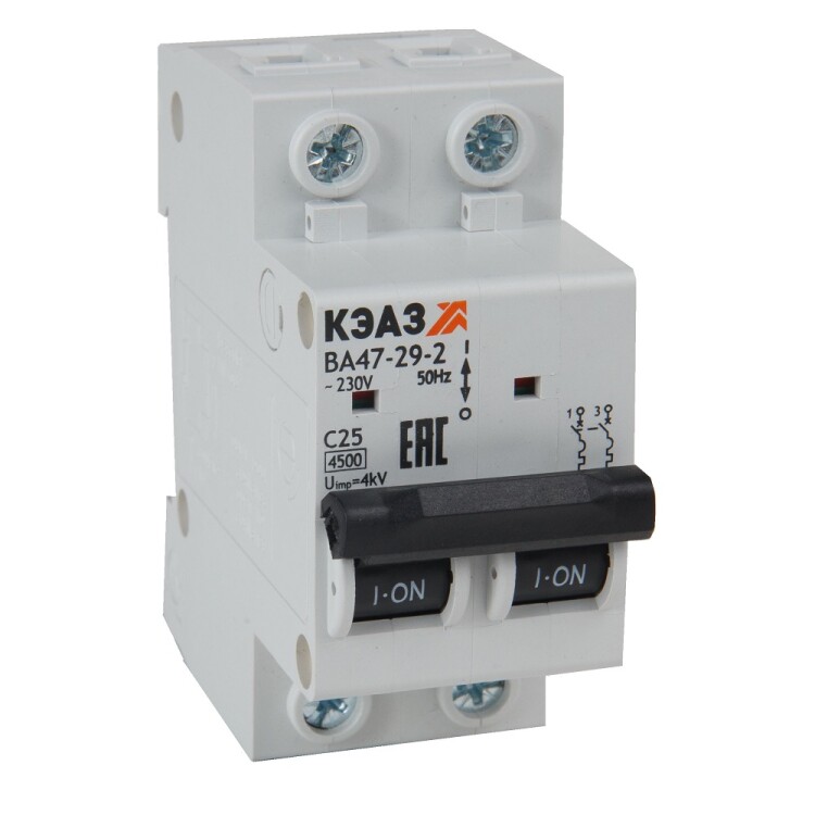 Выключатель автоматический двухполюсной ВА47-29-2D1-УХЛ3 (4,5кА)| 318257 | КЭАЗ